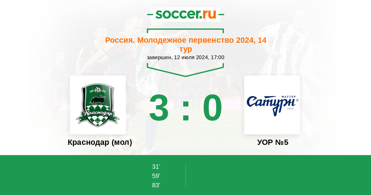 Протокол матча Краснодар (мол) против УОР №5