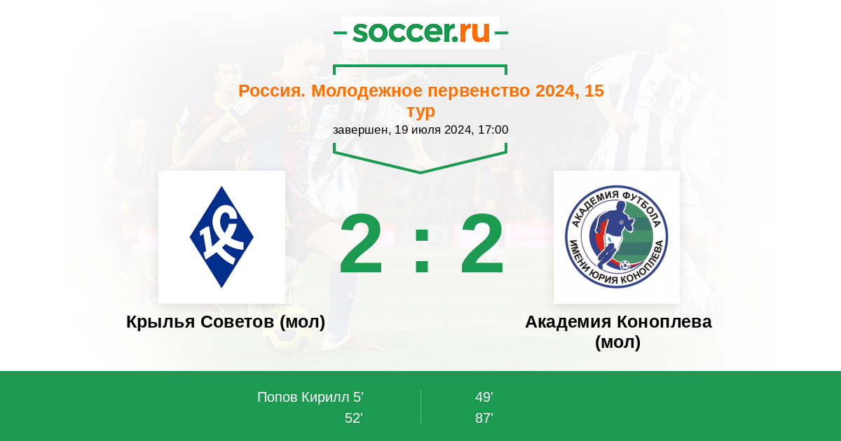 Протокол матча Крылья Советов (мол) против Академия Коноплева (мол)