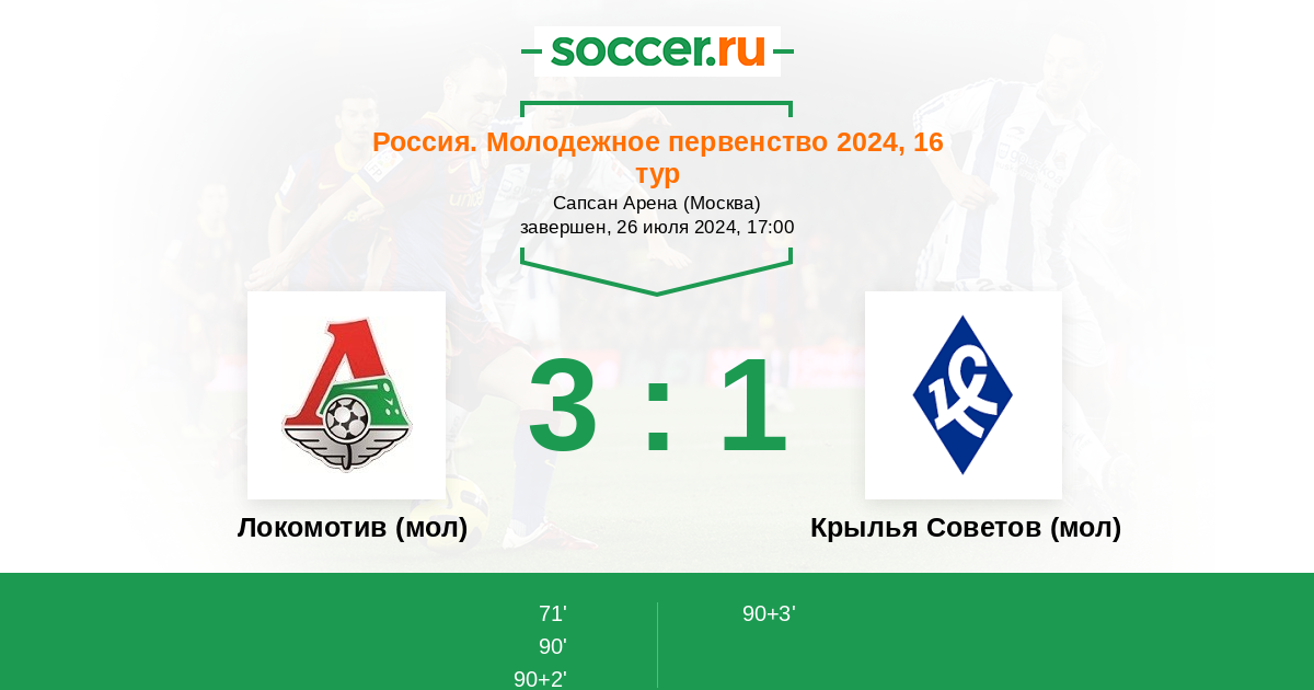 Протокол матча Локомотив (мол) против Крылья Советов (мол)