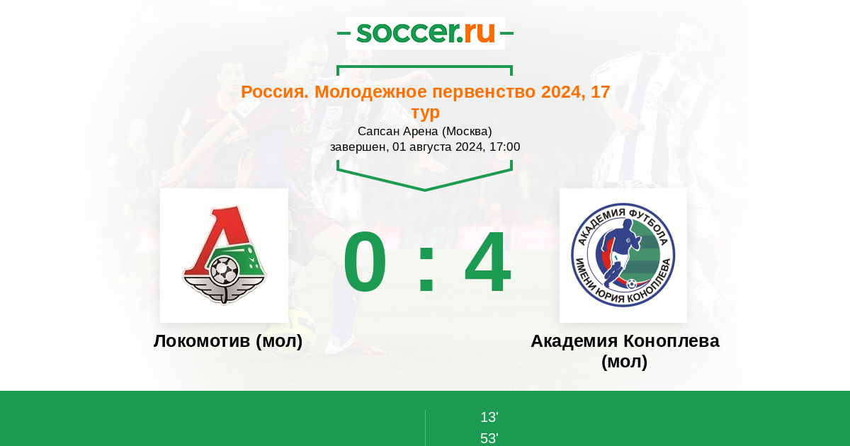 Протокол матча Локомотив (мол) против Академия Коноплева (мол)