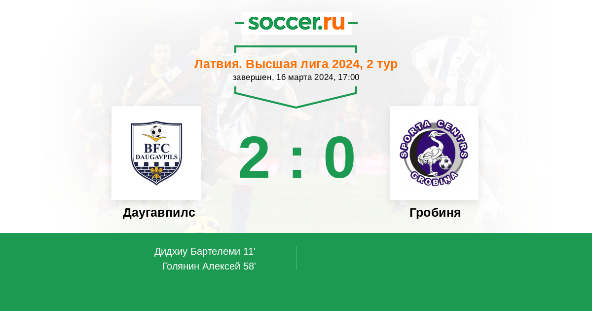Протокол матча Даугавпилс против Гробиня