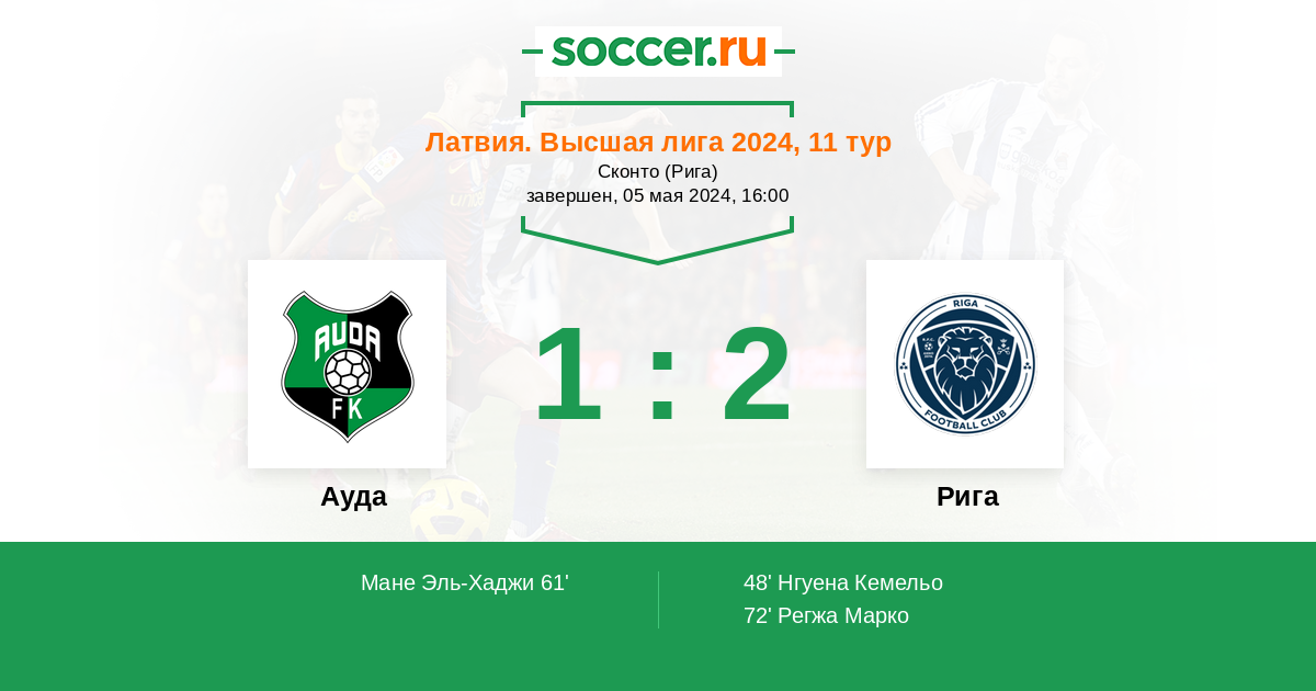Протокол матча Ауда против Рига