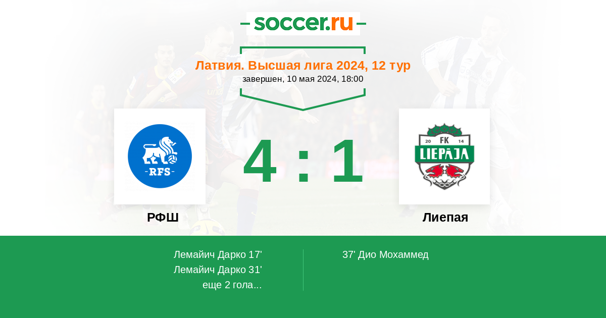 37' (2:1) Дио Мохаммед (11) (Гринбергс Янис (21))