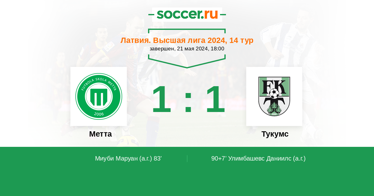 Протокол матча Метта против Тукумс