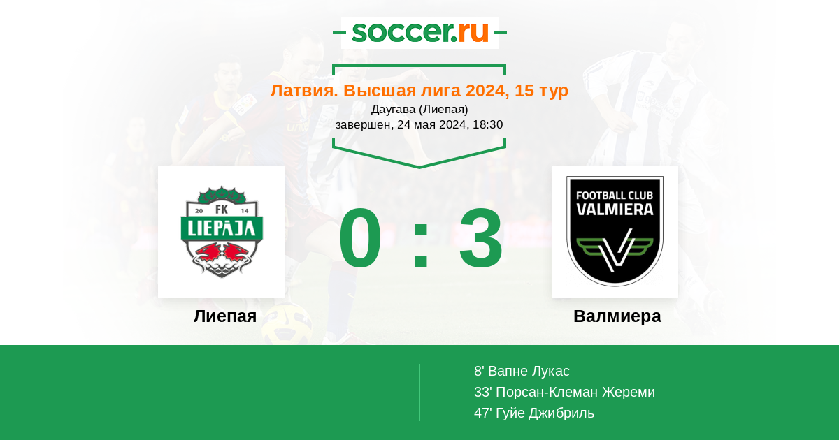 Протокол матча Лиепая против Валмиера