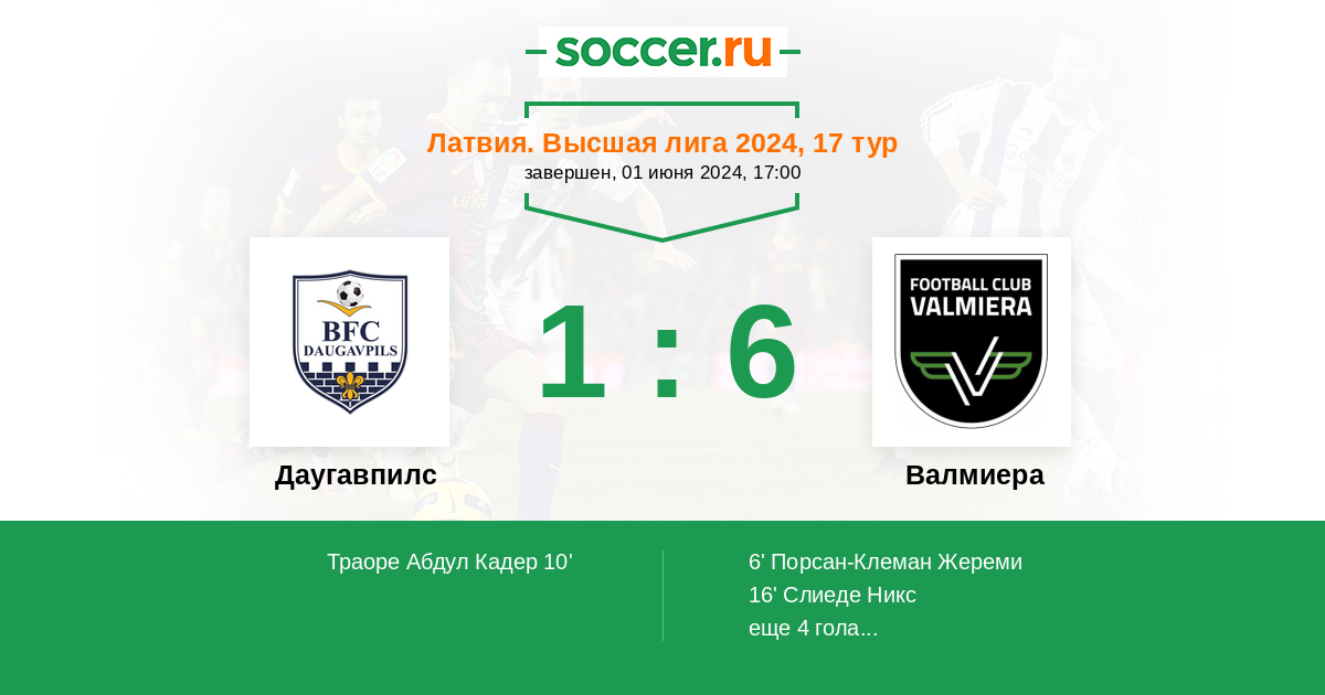 Протокол матча Даугавпилс против Валмиера