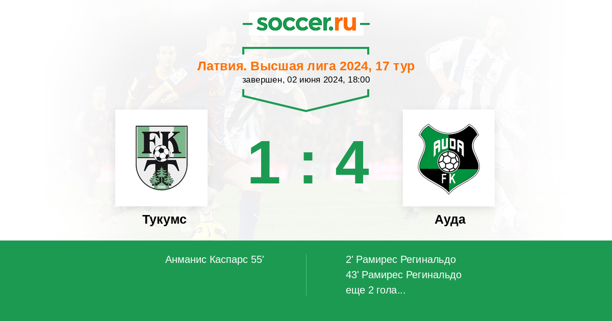 Протокол матча Тукумс против Ауда