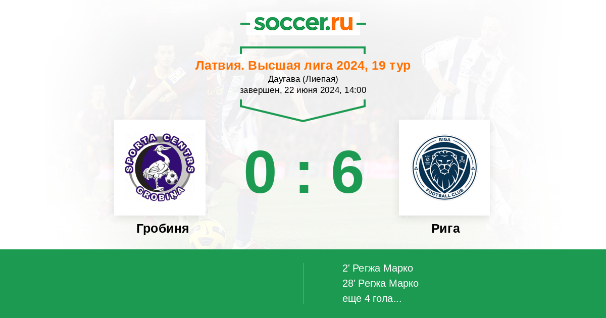 Протокол матча Гробиня против Рига