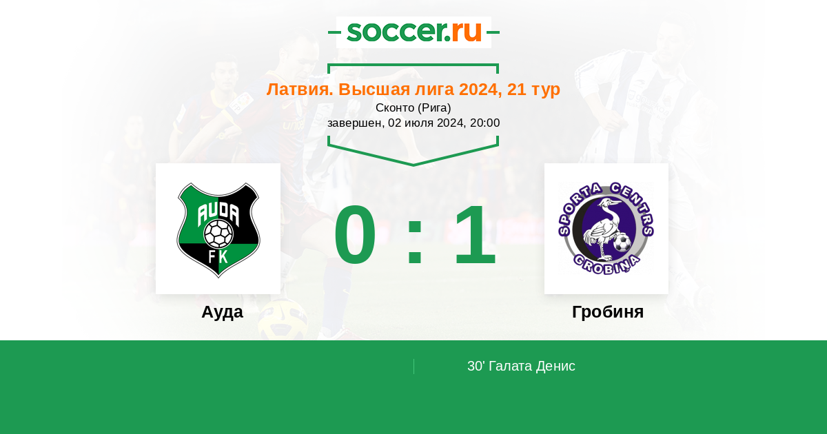 Протокол матча Ауда против Гробиня