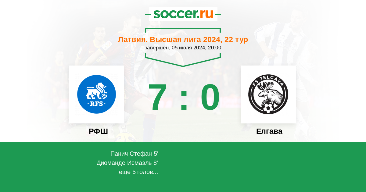 Протокол матча РФШ против Елгава