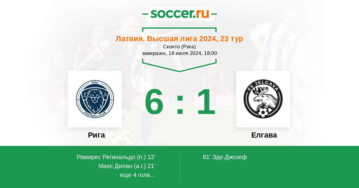 Протокол матча Рига против Елгава