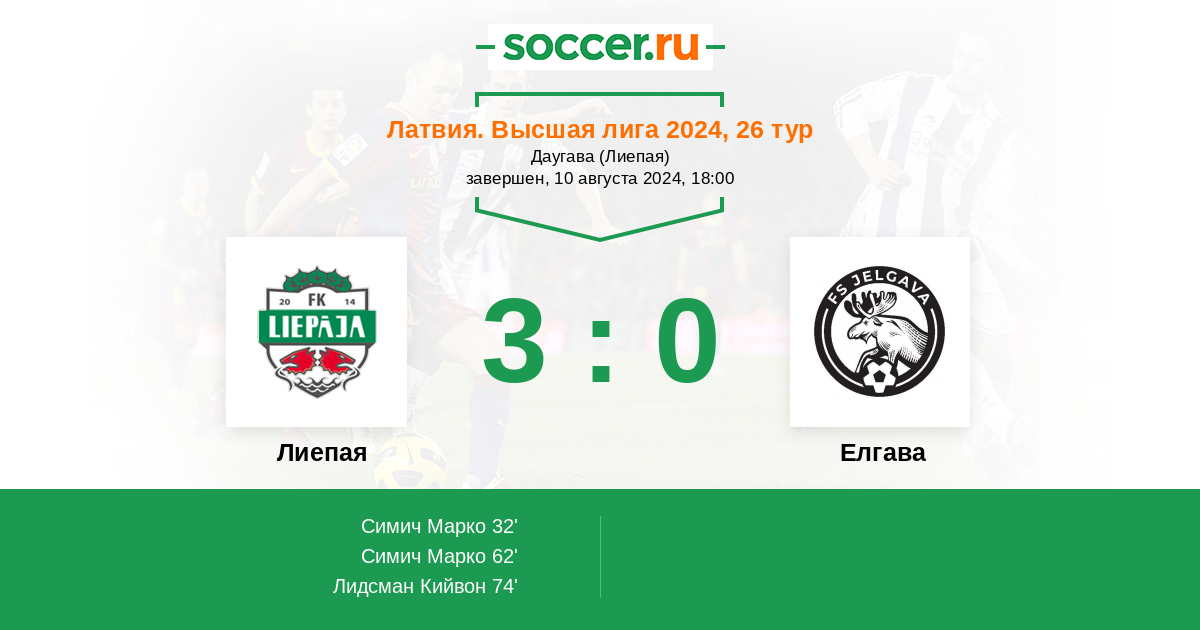 32' (1:0) Симич Марко (55) (Гринбергс Янис (21))