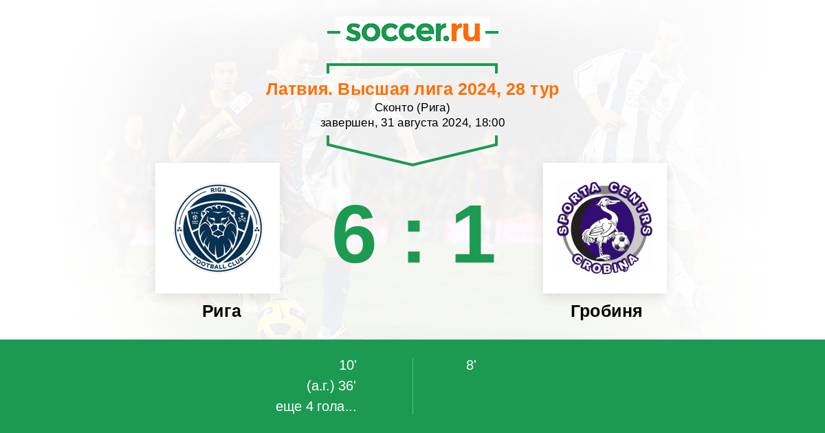 Протокол матча Рига против Гробиня