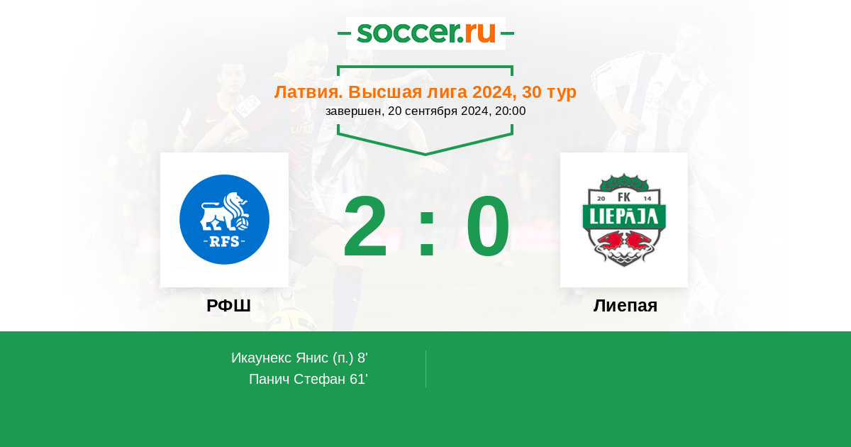 61' (2:0) Панич Стефан (26) (Зеленковс Дмитрис (18))