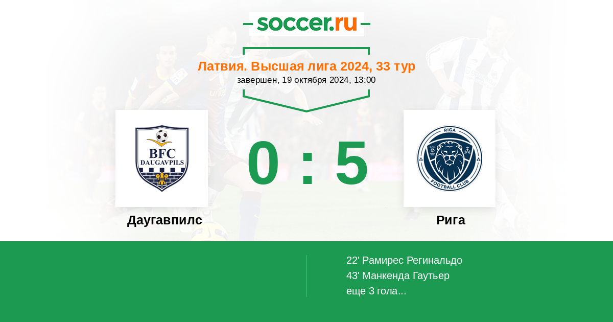 Протокол матча Даугавпилс против Рига