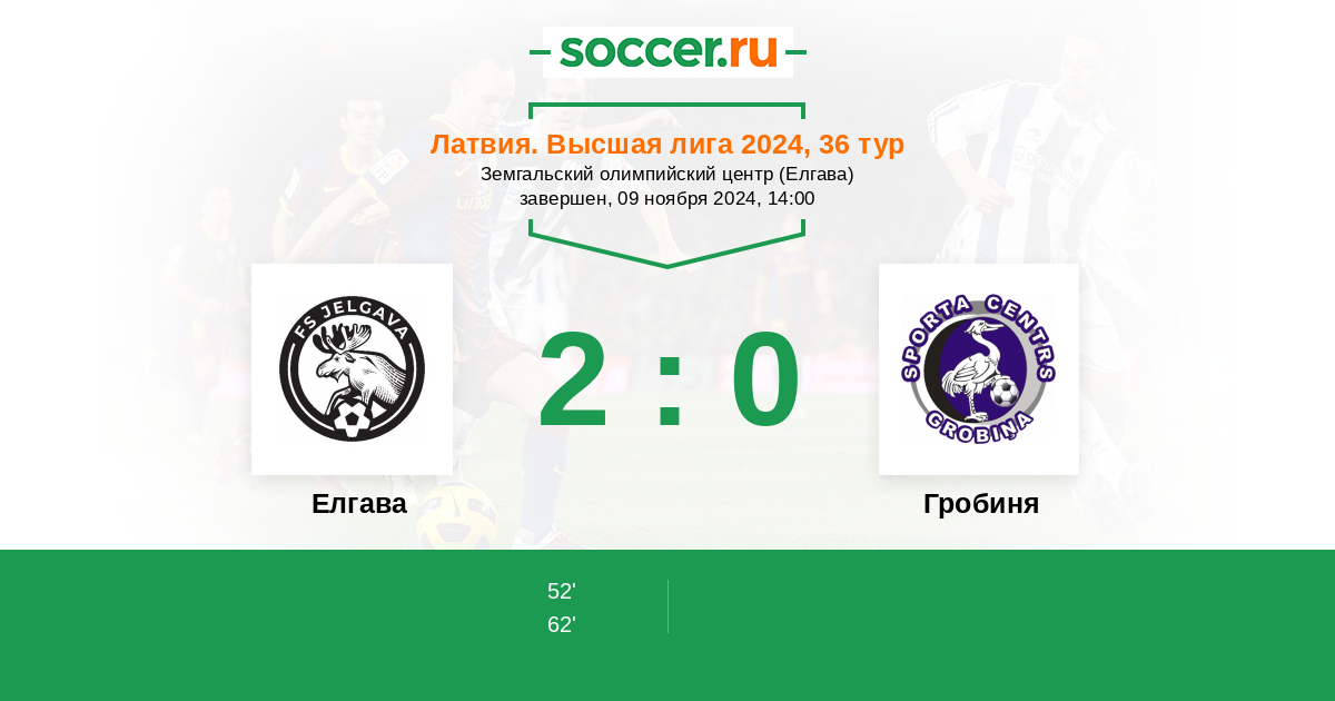 Протокол матча Елгава против Гробиня