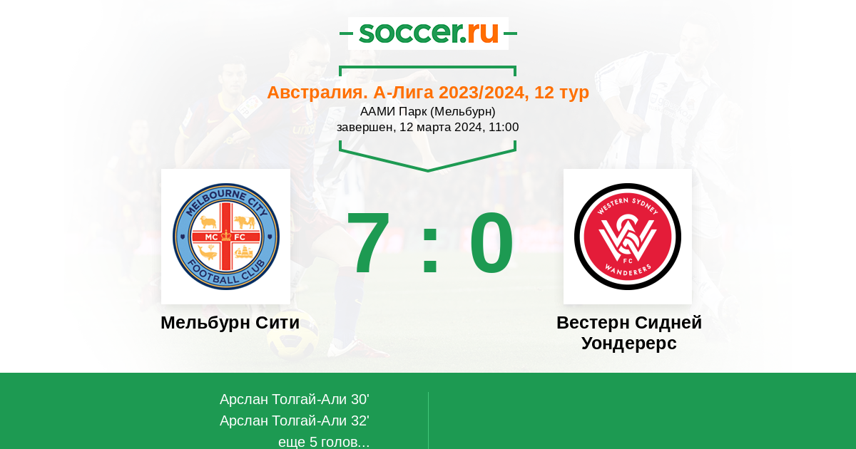 Протокол матча Мельбурн Сити против Вестерн Сидней Уондерерс