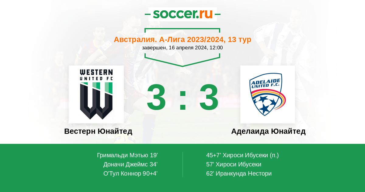 Протокол матча Вестерн Юнайтед против Аделаида Юнайтед