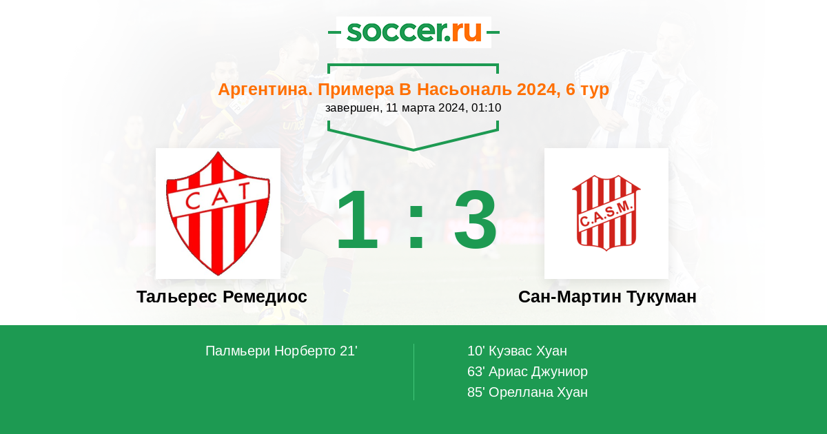 Протокол матча Тальерес Ремедиос против Сан-Мартин Тукуман
