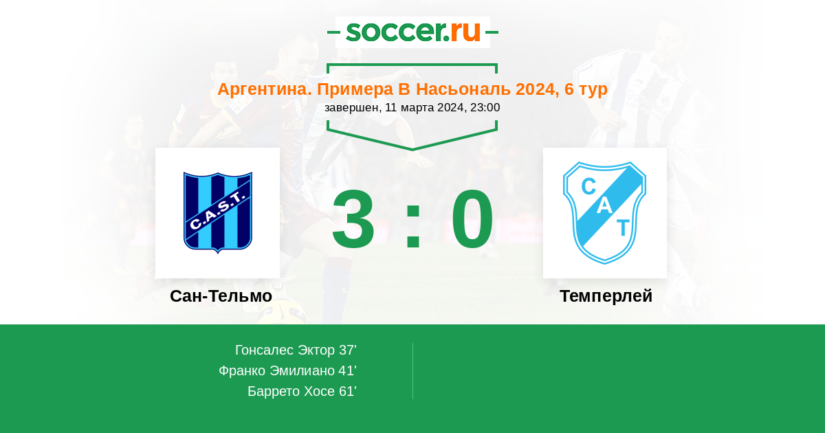 Протокол матча Сан-Тельмо против Темперлей