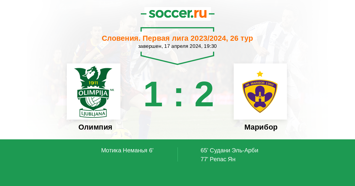 Протокол матча Олимпия против Марибор