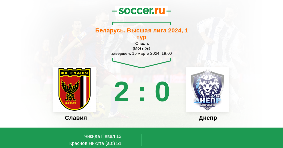 В предстоящем матче 1 - го тура Высшей Лиги Белоруссии 2024 между командами Славия Мозырь и Днепр Могилёв , фаворитом на победу является команда хозяев Славия Мозырь, так как они играют лучше.