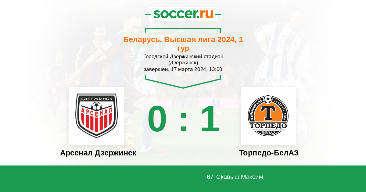 Протокол матча Арсенал Дзержинск против Торпедо-БелАЗ