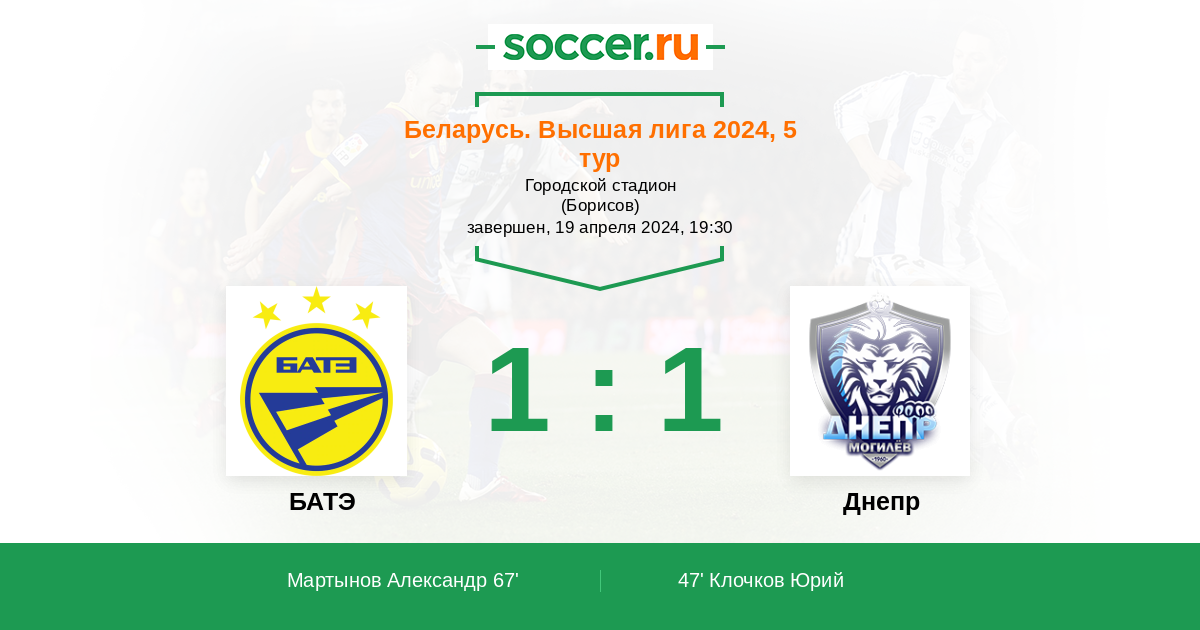 Протокол матча БАТЭ против Днепр