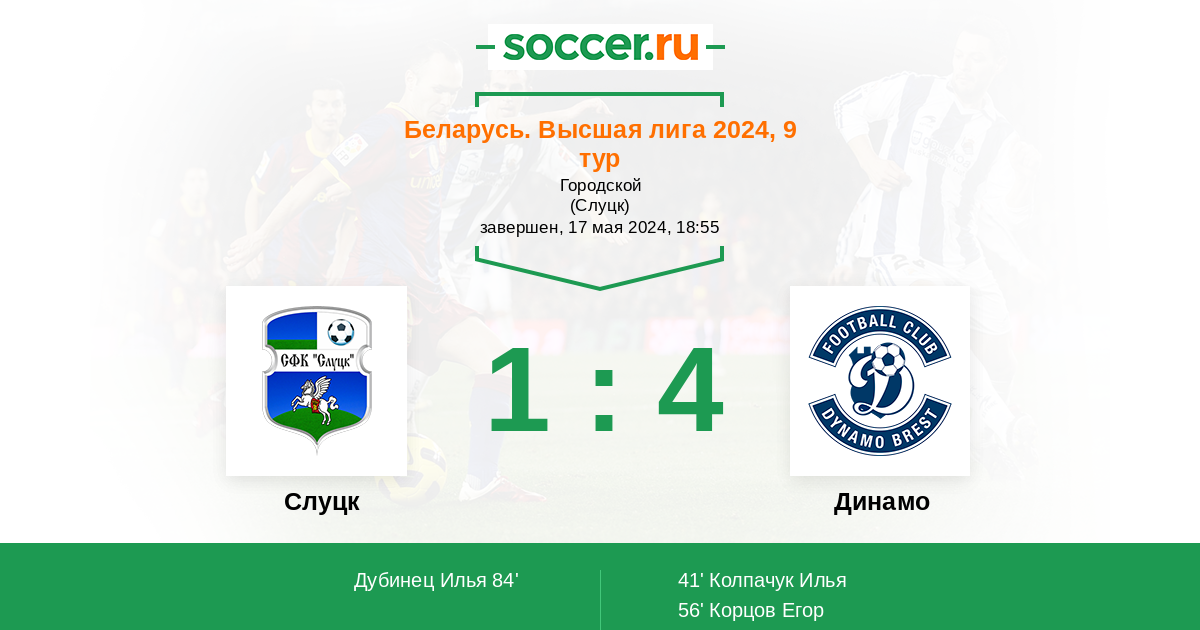 Очевидным фаворитом данного противостояния являются динамовцы. За последние семь туров белорусского чемпионата “Слуцк” потерпел целых пять поражений, в то время как его нынешний оппонент не проиграл ни разу с начала чемпионата. На прошлой неделе команда из Минской области проиграла в Дзержинске местному “Арсеналу”, который за тур до этого без шансов уступил как раз “Динамо”.