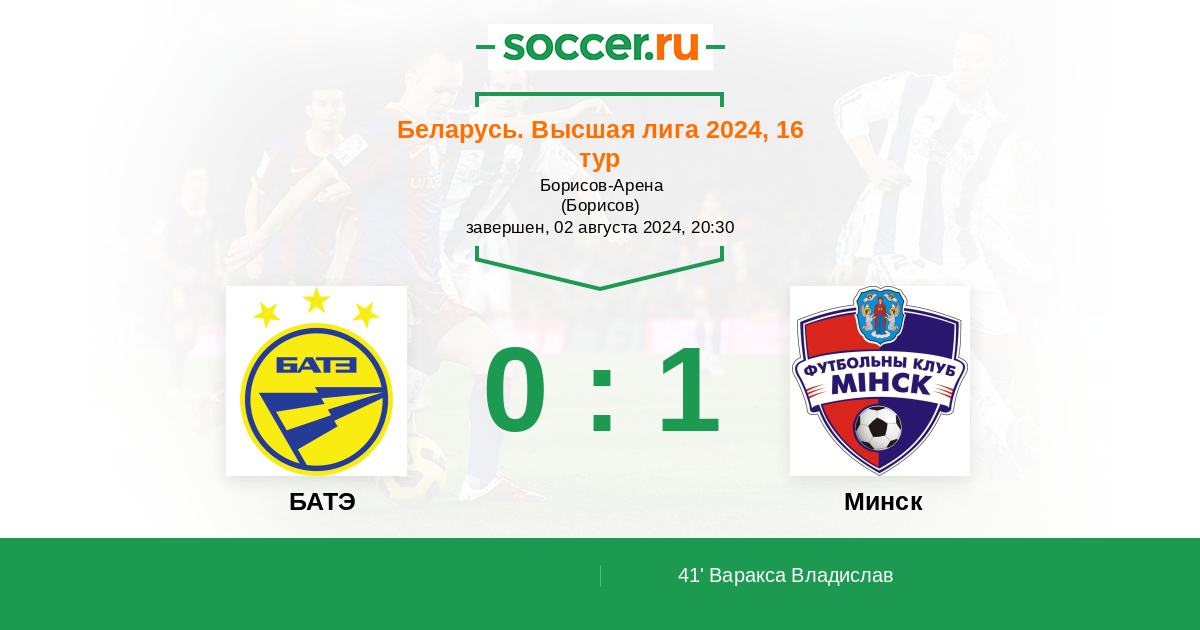 Протокол матча БАТЭ против Минск