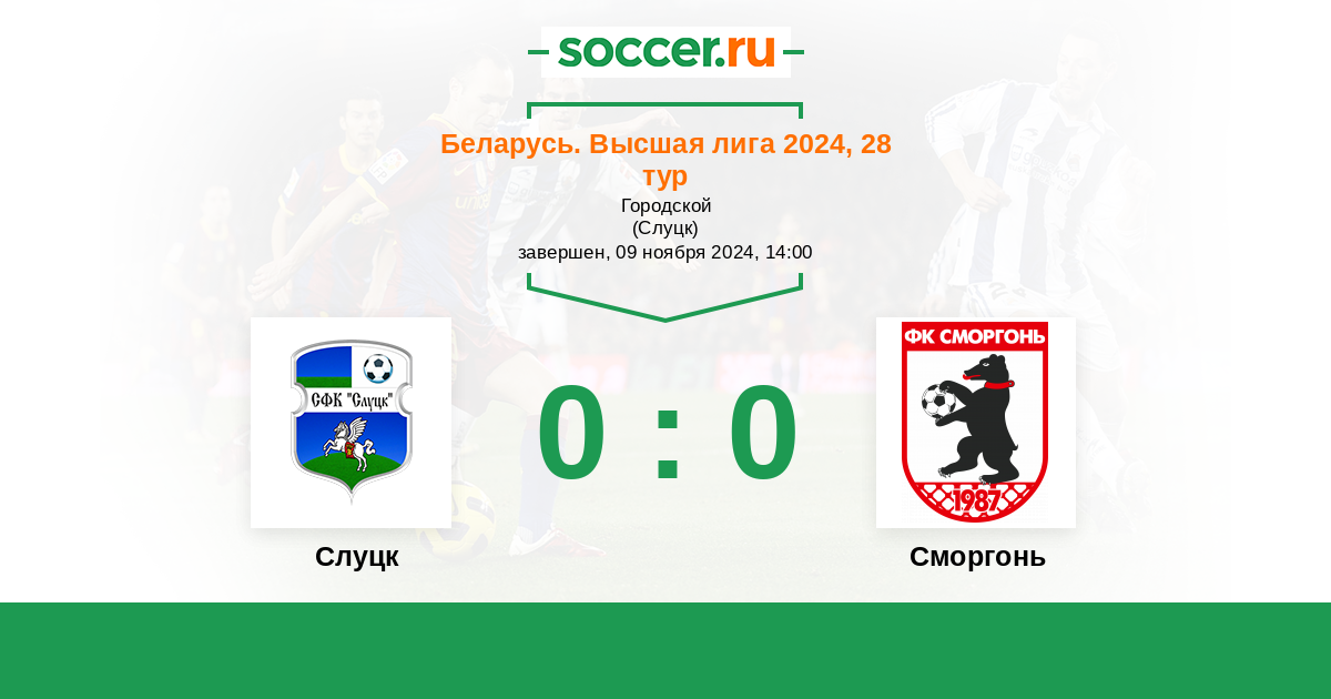 Протокол матча Слуцк против Сморгонь