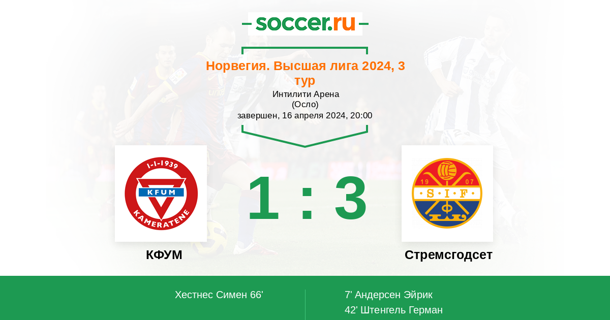 Протокол матча КФУМ против Стремсгодсет
