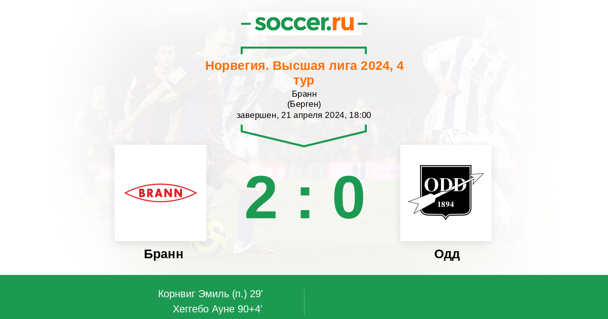 Протокол матча Бранн против Одд