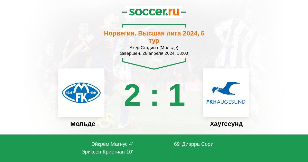 4' (1:0) Эйкрем Магнус (7) (Хауген Кристоффер (28))