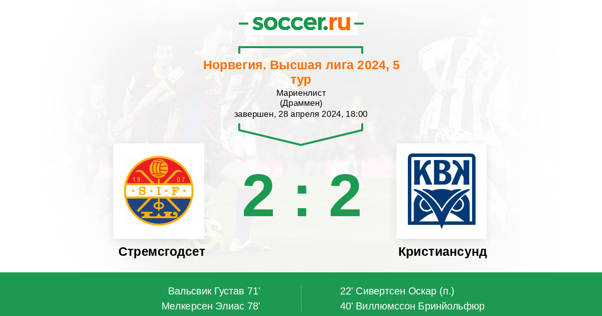 78' (2:2) Мелкерсен Элиас (9) (Вильсвик Ларс (26))