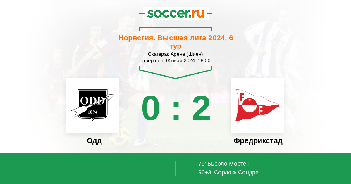 90+3' (0:2) Сорлокк Сондре (13) (Бегби Людвиг (18))
