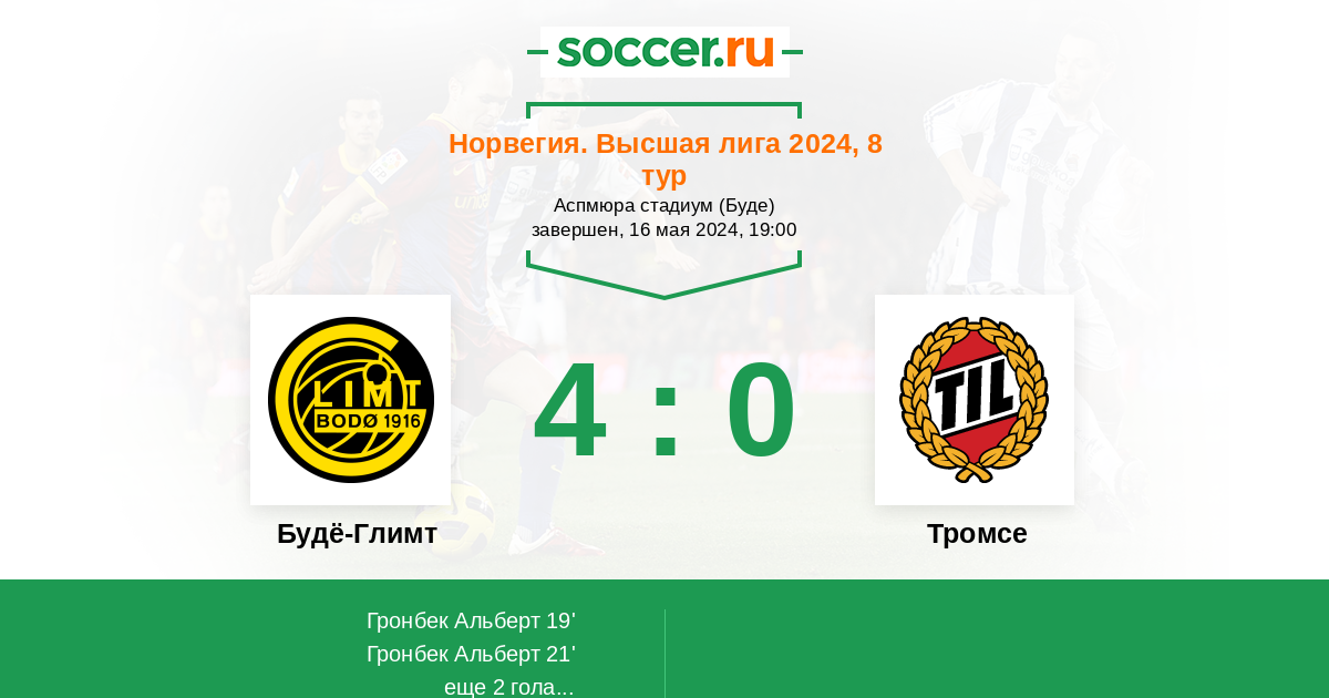 19' (1:0) Гронбек Альберт (8) (Соренсен Адам (30))