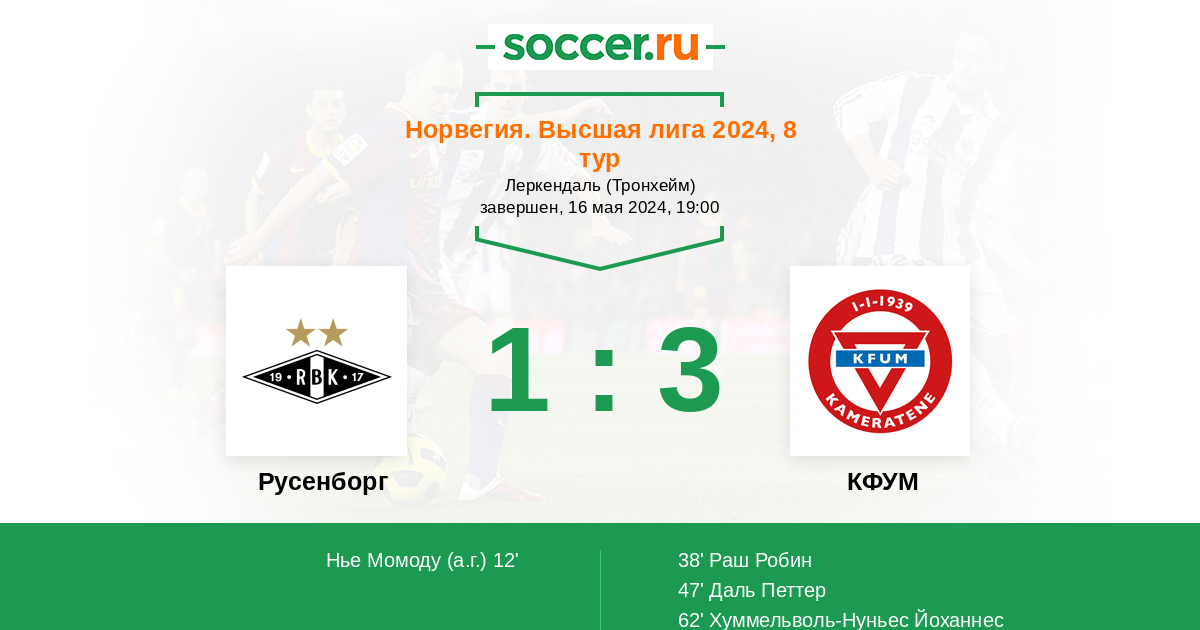 Протокол матча Русенборг против КФУМ