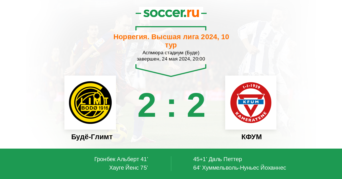 Протокол матча Будё-Глимт против КФУМ
