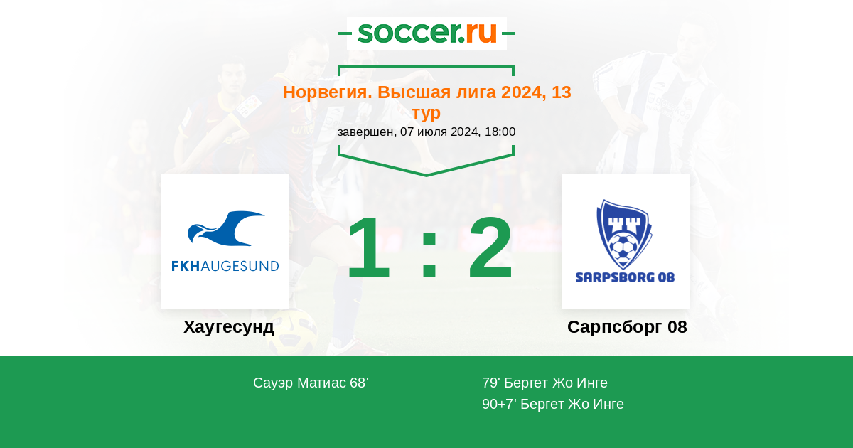 68' (1:0) Сауэр Матиас (7) (Хоуп Миккель Калвенес (25))