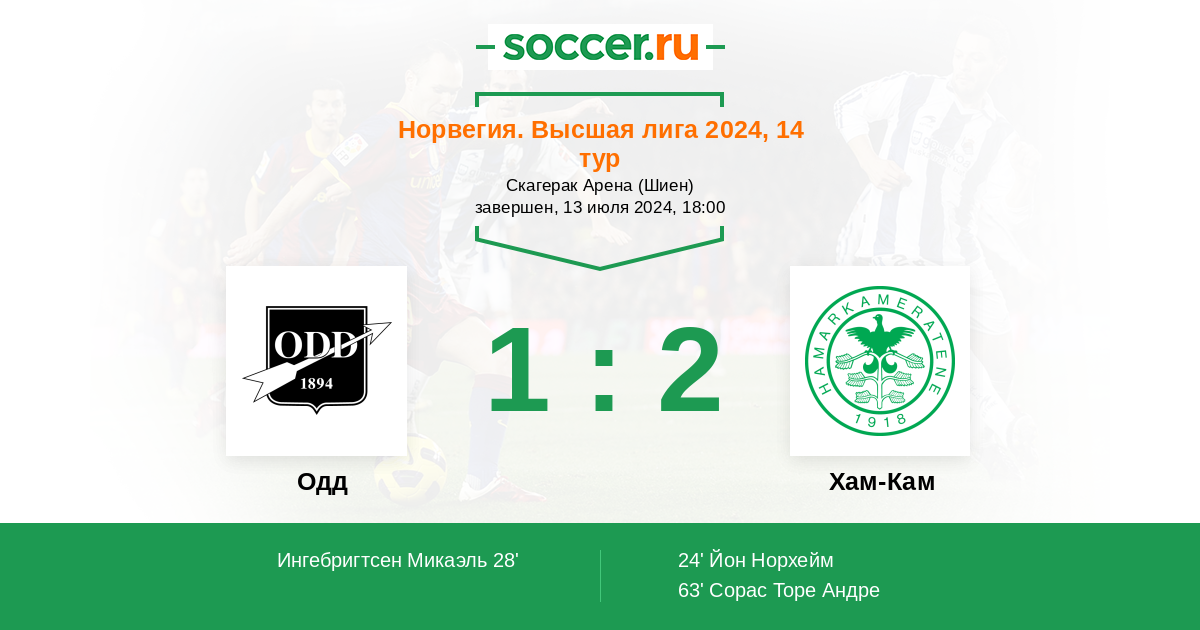 28' (1:1) Ингебригтсен Микаэль (10) (Рууд Эспен (2))