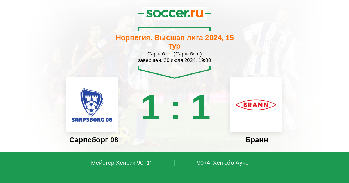 Протокол матча Сарпсборг 08 против Бранн