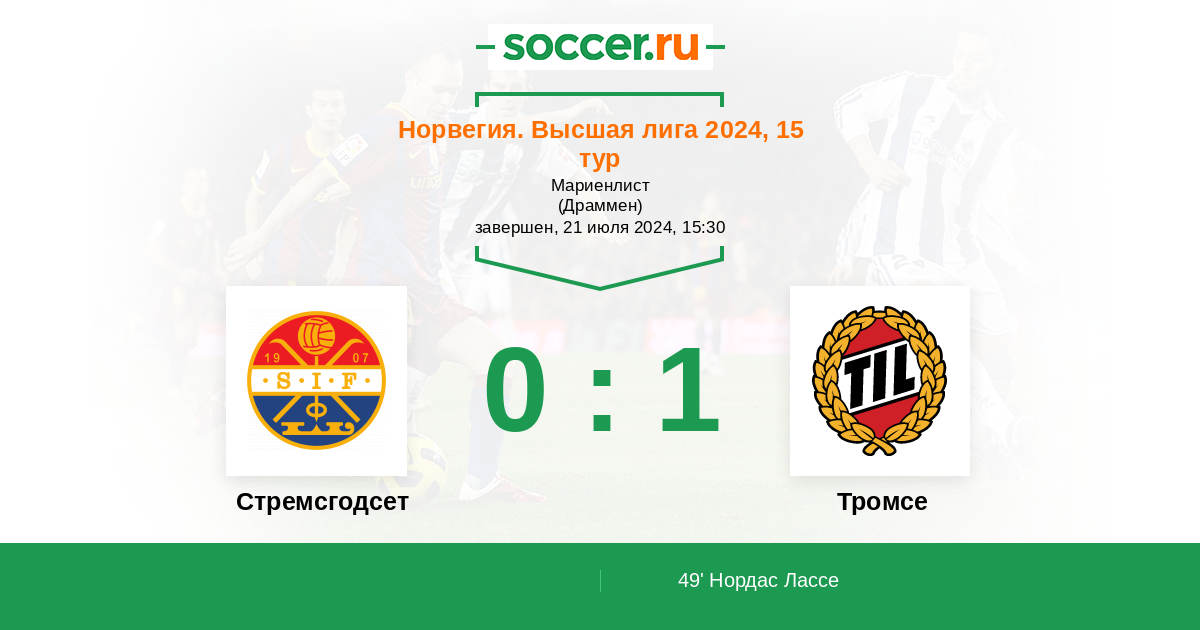 Протокол матча Стремсгодсет против Тромсе