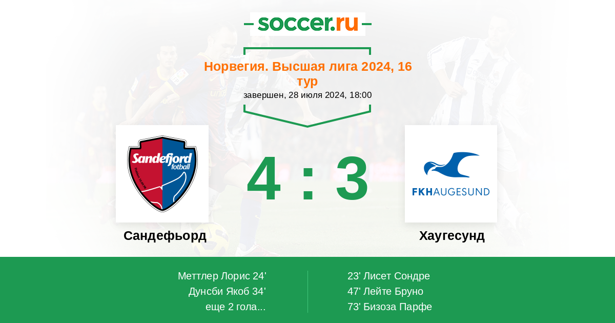 34' (2:1) Дунсби Якоб (27) (Морк Сандер (6))
