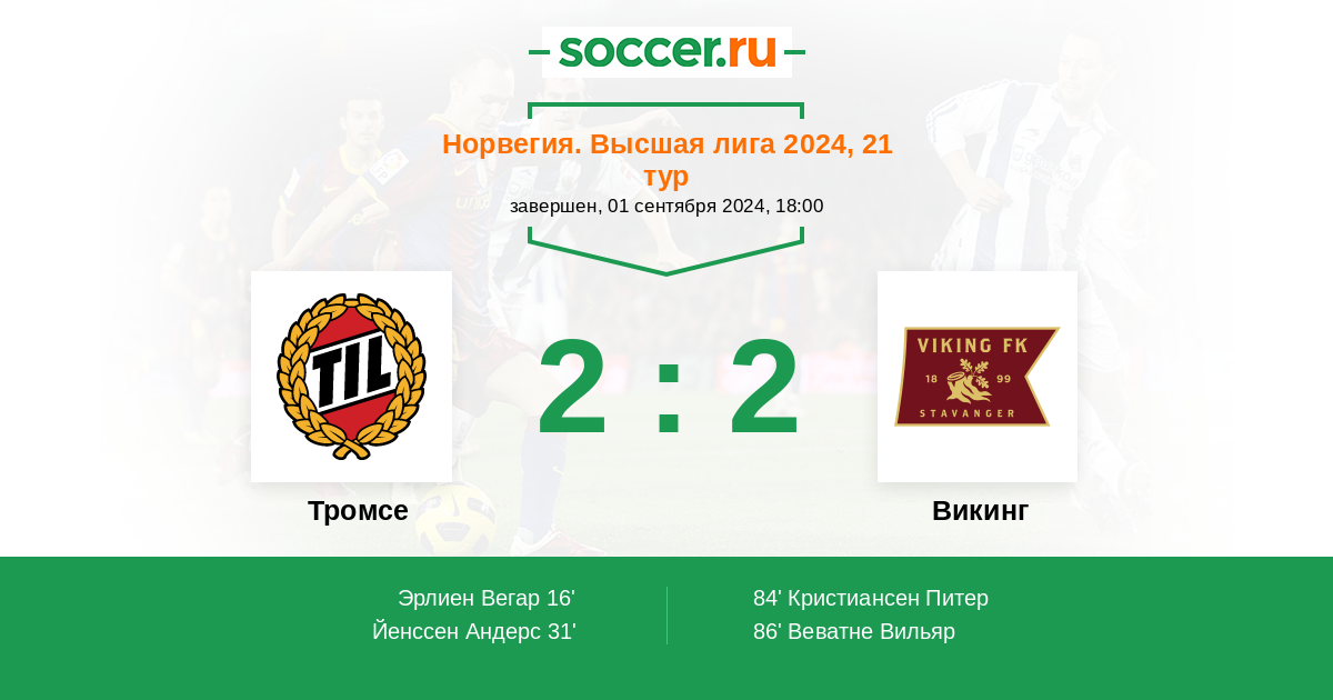 16' (1:0) Эрлиен Вегар (15) (Норхейм Рунар (23))