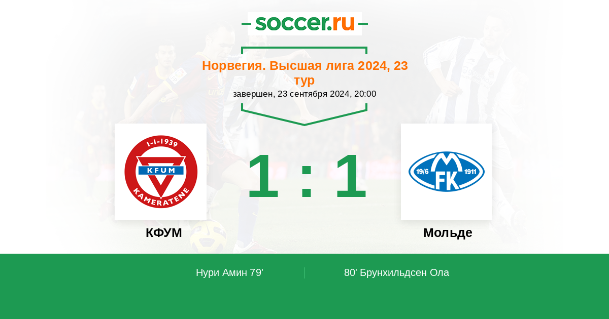 80' (1:1) Брунхильдсен Ола (27) (Кааса Маркус (15))
