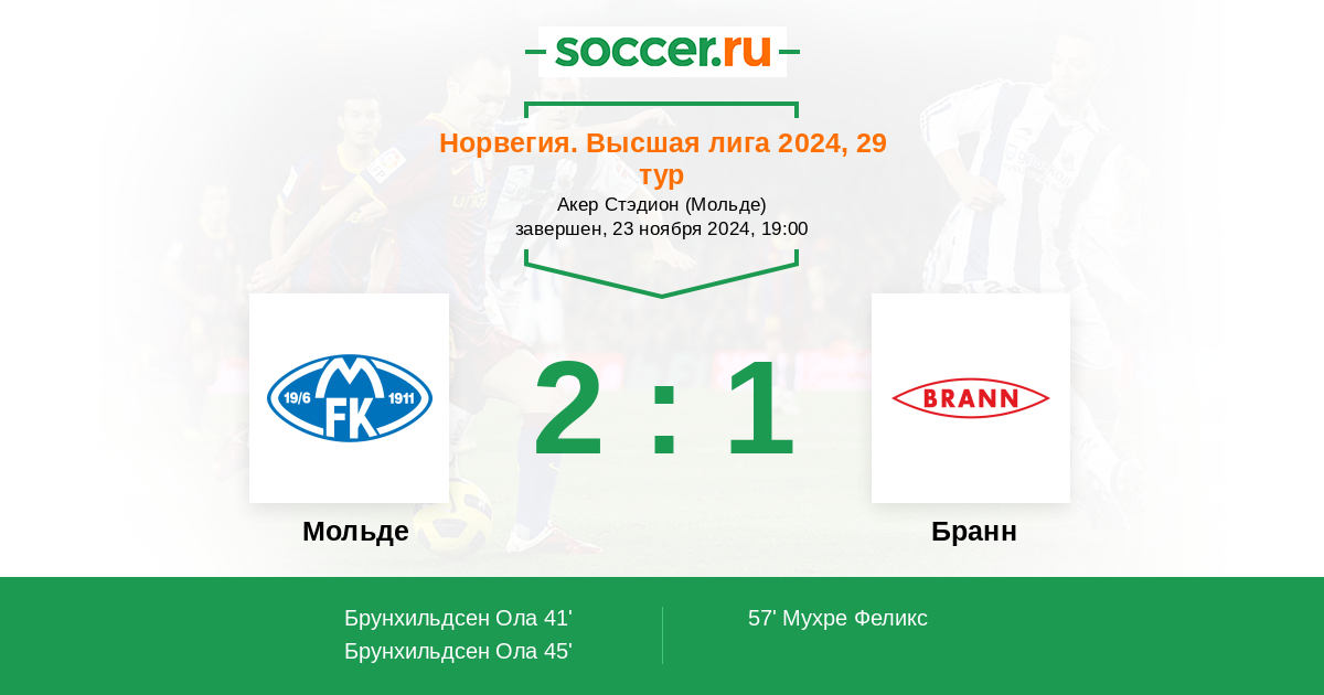 Протокол матча Мольде против Бранн