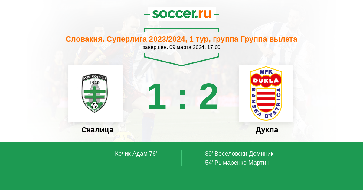 54' (0:2) Рымаренко Мартин (11) (Хлинка Марек (88))