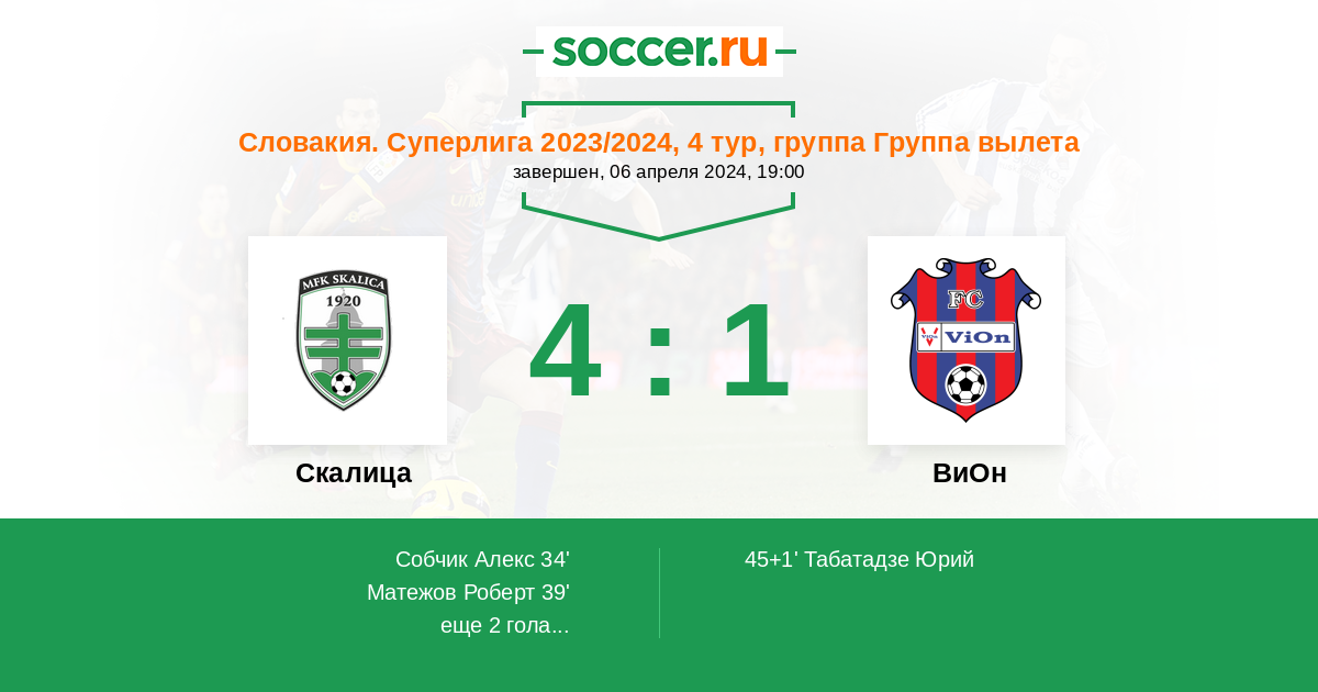 Протокол матча Скалица против ВиОн