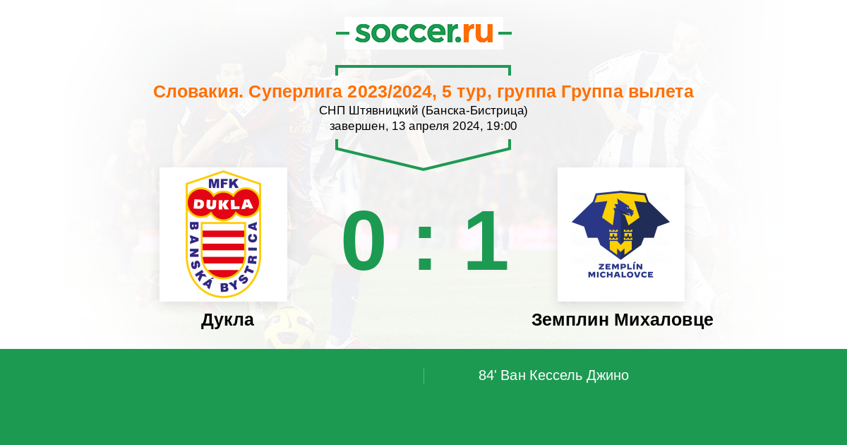 Протокол матча Дукла против Земплин Михаловце